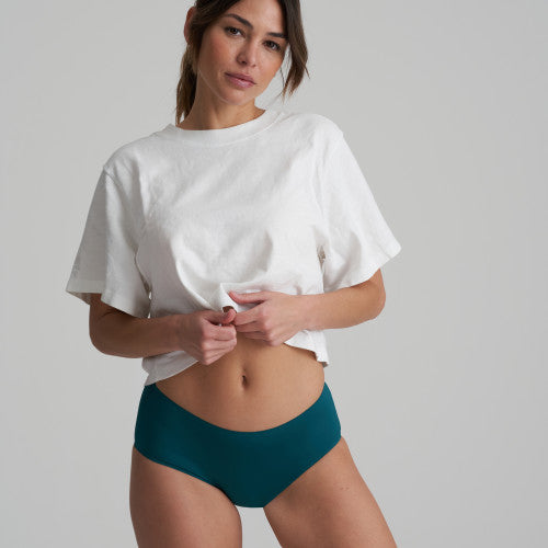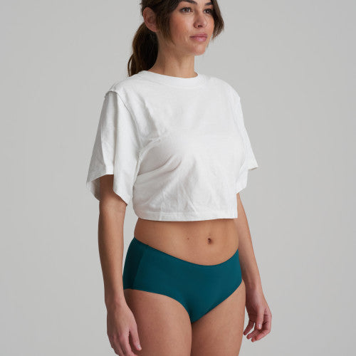 Shorty tendance qui se porte comme une seconde peau et ne laisse aucune marque sous les vêtements. Le secret ? Sa microfibre ultra-douce et ses coutures aux finitions invisibles. Les plus : cette culotte a une petite poche en coton doux et aucune étiquette à l’intérieur. Jasper Green est un vert émeraude intense au look élégant. La nuance bleue flatte les peaux foncées comme les peaux claires.
